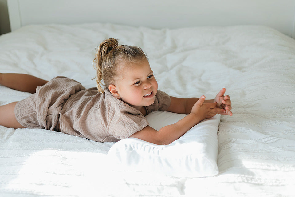 Not too high. Not too firm. Not too fluffy. Just perfectly shaped for growing toddlers learning to sleep in their own bed. The gentle contour gives their head and neck the support they need to sleep comfortably all night.